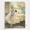 Oil on canvas. The painting shows a ballerina tying her pointe shoes before a dance, with an open window to the background to show flowering trees, with "Wen Ze Chen" to the lower left. Approx. 29 3/4 by 23 3/4 in., 75.6 by 60.5 cm.