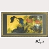 Ink and color on paper, framed. The large painting on gold tinted paper, with budding and blooming lotus flowers and inscription with two seals to the left. The painting approx. 20 by 39 in., 50.7 by 99 cm.