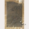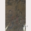 18th century, Qing dynasty. Ink and color on silk, un-mounted hanging scroll with silk border. Three Qing dynasty women stand sumptuously dressed beneath a tree, their make-up carefully done, and hair adorned with jewels and flowers, one is holding a fan, another carries a stick over her shoulder from which peaches are suspended. Approx. 32 by 19 3/4 in., 81.3 by 50.2 cm.