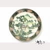 Possibly Edo period. The dish with a hand painted scene of a house in a mountainous landscape to the center and an abstract design border, with green fuku mark to the base. Approx. 9 in. diam., 23 cm. diam.