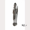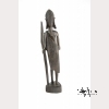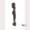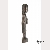 The male hunter carved with an elongated face, spear or walking stick, body cloth and pouch, on a plinth. Approx. 15 by 3 1/4 in., 38 by 8.1 cm.