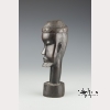 A carved wooden head of a bearded man wearing a hat, long narrow neck ending in an incorporated pedestal. Approx. 11 7/8 by 2 1/2 in., 30 by 6.3 cm.
