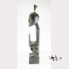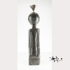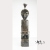 The figure with narrow eyes and mouth, with hair extending from the top of the head, on an attached plinth. Approx. 26 1/2 by 5 in., 67.2 by 12.5 cm.