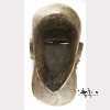 The well-hollowed wood mask with pierced eyes, long nose, straight mouth, straight beard and pierced ears with cloth embellishment. Approx. 17 by 7 1/2 in., 43.1 by 19 cm.