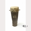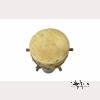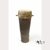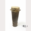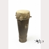 The drum body made from a well hollowed tree trunk, with carved band to the base, the top with a rawhide drum head, six large wooden pegs and an animal skin and fur border. Approx. 33 by 17 1/2 in. diam., 83.7 by 44.4 cm. diam.