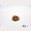 The irregular shaped, petrified wood snuff bottle with amber inclusions, with green top, stopper and spoon. Approx. 2 3/4 by 1 7/8 in., 6.9 by 4.6 cm.