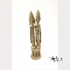 Mali. The figures are shown seated on a shared chair with figural supports, the female to the left and the male to the right with his arm around the female's shoulders, each carved with typical hatching and cross-hatching embellishment, on a shared base. Approx. 36 1/8 by 7 1/4 in., 91.6 by 18.4 cm.
