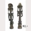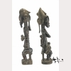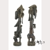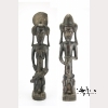 Cote d'Ivoire. The male and female pair of figures wearing headdresses, their bodies carved to show abstract designs, the female with a baby on her lap, the male with a modesty cloth. The largest approx. 24 1/4 by 4 1/4 in., 61.5 by 10.6 cm.