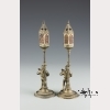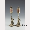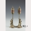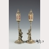The incense burners in the form of a French street lamp, with a man playing a mandolin while leaning on the street lamp, with "Vantines Made in France" to the base. Each approx. 10 3/4 by 3 in., 27.4 by 7.8 cm.