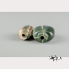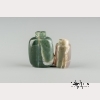 Each of the snuff bottles of flattened rectangular form, with a mottled surface, each on oval foot rings. From the Christian Collection, Middleborough, MA. Approx. 1 7/8 by 2 1/4 in., 4.6 by 5.6 cm.