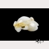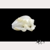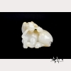 The white jade carved as a recumbent ram with russet inclusions to the horns, a lingzhi sprig in its mouth. Approx. 1 5/8 by 2 1/8 in., 4 by 5.3 cm.