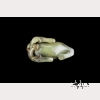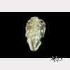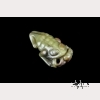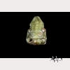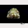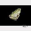 The spinach jade carving of the three-legged frog Jin Chan (or "Chan Chu"), a symbol of wealth, holding a branch with two pomegranates in his mouth. Approx. 3 1/4 by 1 7/8 in., 8.1 by 4.6 cm.