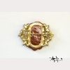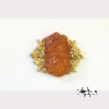 The beeswax brooch with gold plated sterling silver mount and pin back, the beeswax carved to show a floral motif matching the mount, marked sterling silver. Approx. 1 3/4 by 2 in., 4.4 by 5 cm.