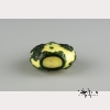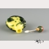 19th century. A yellow glass snuff bottle of flattened round form with green glass overlay depicting vines and men at play, with green oval foot rim and a carnelian stopper and spoon, with maker' mark at bottom. Approx. 2 7/8 by 2 in., 7.2 by 5.5 cm.