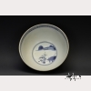 Kangxi period. The deep bowl with light celadon glaze to the exterior, the interior base painted in underglaze blue on a white ground with a landscape below an abstract border encircling the rim, on circular foot ring. Approx. 3 1/4 by 6 1/8 in. diam.