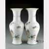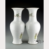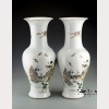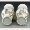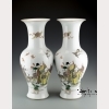 20th century, Republic period. Baluster vases decorated in famille verte overglaze enamels to depict Shoulao, the Daoist god of longevity, surrounded by attendants, young boys, deer, cranes, and bats, all auspicious symbols of longevity for many generations. The four scholarly objects including a chessboard, lute, book and scroll paintings adorn the trumpet neck. Unmarked bases. Approx.19 by 8 in., 48.3 by 20.3 cm.