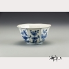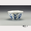 c. 1640. The small blue and white porcelain eight-sided bowl on a tall foot ring, decorated with the flowers of the four seasons-- prunus (winter), orchid (spring), lotus (summer) and chrysanthemum (fall)-- recovered from the Hatcher Shipwreck of 1640. Provenance: Christie's Amsterdam, 12-13 June 1984, "The Hatcher Collection." Approx. 2 1/4 by 4 1/2 in., 5.8 by 11.5 cm.