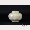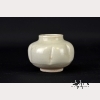 The jarlet of bulbous form with molded sides, the creamy white glaze thinning above the foot. Approx. 2 5/8 by 3 in. diam., 6.5 by 7.5 cm. diam.