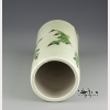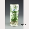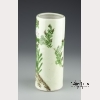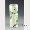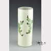 The hat stand with a celadon glaze ground with hand painted flowering prunus. Approx. 11 3/8 by 4 3/8 in. diam., 29 by 11.2 cm. diam.